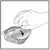 Der Inhalator ist in einem Schutzbehälter verpackt. Bitte öffnen Sie diesen erst, wenn Sie bereit sind für die Inhalation. Dann entfernen Sie die Schutzfolie, um den Behälter zu öffnen. Dieser enthält ausserdem ein Trockenmittelpäckchen zur Feuchtigkeitsreduktion. Bitte entsorgen Sie das Trockenmittelpäckchen. Dieses darf nicht geöffnet, geschluckt oder eingeatmet werden.