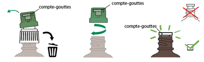 2. Vissez fermement pour que le compte-gouttes soit coincé