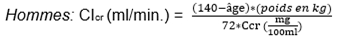 Si seule la concentration de la créatinine sérique (Ccr) est connue, la clairance de la créatinine (Clcr) peut être estimée au moyen de la formule suivante: