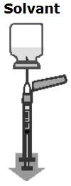 (b) Utiliser la seringue avec l'aiguille préfixée pour aspirer le volume prédéfini de solvant du flacon de solvant dans la seringue.