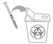 (a) Mettre en place le dispositif de sécurité de l'aiguille comme décrit à l'étape 2 (e). Éliminer conformément aux procédures appropriées les flacons, l'adaptateur, les aiguilles et la seringue après l'injection.
