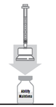 (c) Injecter lentement le solvant dans le flacon contenant la poudre.
