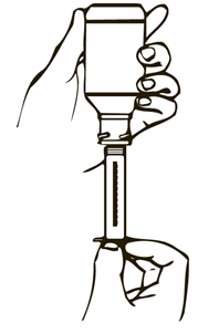 Étape 3: Poussez le piston à fond en direction de l'embout de la pipette, avant d'insérer l'embout de la pipette dans l'adaptateur du flacon.