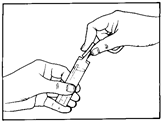 3.Tenir la dose unitaire à la verticale et l'ouvrir en tournant la pointe jusqu'à la détacher (voir Fig. 2)