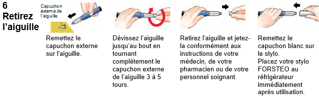 ·Après chaque utilisation, remettez immédiatement votre stylo FORSTEO au réfrigérateur. Lisez et suivez les instructions sur la manière de conserver le médicament dans l'information destinée aux patients.