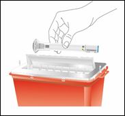 ·Jetez le stylo prérempli Omvoh usagé immédiatement après utilisation dans un conteneur à aiguilles ou selon les recommandations de votre médecin, de votre pharmacien ou du personnel soignant. Ne jetez pas le stylo prérempli Omvoh dans vos ordures ménagères.