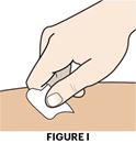 ·Nettoyez le site d’injection en essuyant la peau avec une compresse imprégnée d’alcool (voir Figure I).