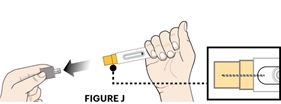 ·Retirez le capuchon gris de l’aiguille du stylo prérempli en le tirant tout droit (voir Figure J).