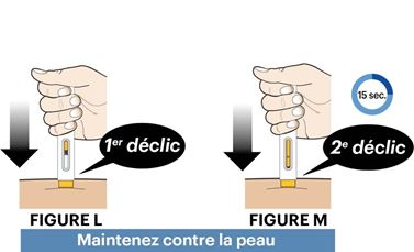 ·Vous entendrez un premier déclic qui indique que l’injection a démarré (voir Figure L).
