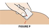 ·Une petite goutte de sang peut s’écouler au niveau du site d’injection, ce qui est normal. A l’aide d’une compresse de coton ou de gaze appuyez sur la zone et appliquez un pansement adhésif, si nécessaire (voir Figure P). NE PAS frotter le site d’injection.