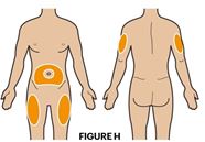 Choisissez le site d’injection (voir Figure H) parmi les sites recommandés suivants: