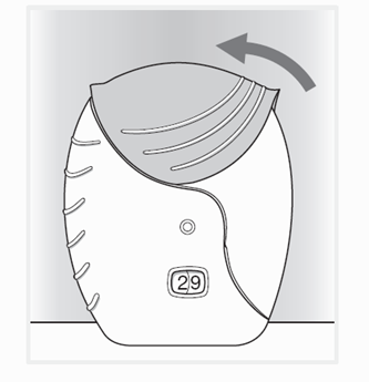·Wenn das Anzeigefeld des Dosenzählers zur Hälfte rot ist, wird es Zeit, dass Sie sich einen neuen Inhalator besorgen. Wenn das Anzeigefeld des Dosenzählers komplett rot ist, ist der Inhalator leer und Sie benötigen einen neuen.